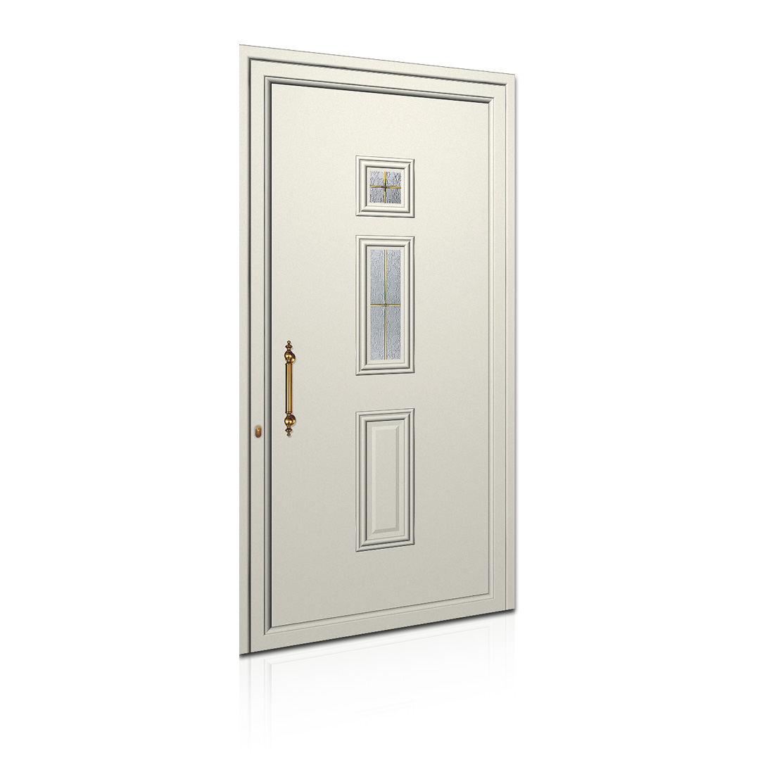 Σχέδιο: Όλα τα σχέδια CNC είναι στις δύο όψεις. Πάχος λαμαρίνας: 1,5 mm και στις δύο όψεις. Κράμα αλουμινίου: Σκληρό για μέγιστη αντοχή στα χτυπήματα. Διαστάσεις πάνελ: 218 x 100 cm.  Πάχος πάνελ: 24 mm.  Τζάμι: Triplex ασφαλείας 6 mm.